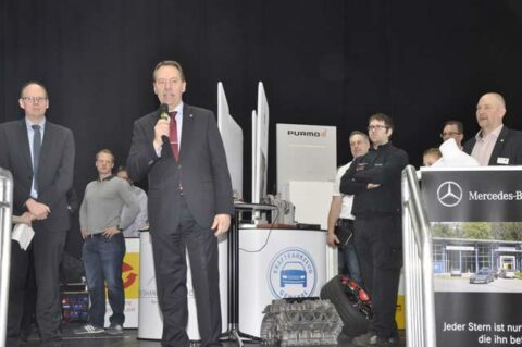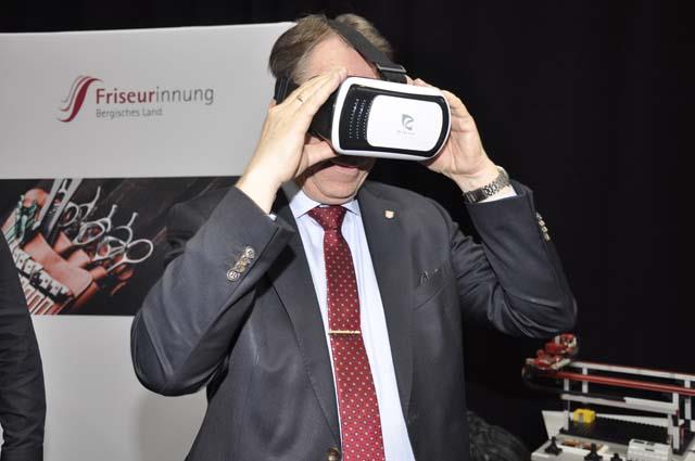 Dachdeckerinnung Bergisches Land: Die Dachdecker haben die innovative Weiterentwicklung ihres Handwerks mit der Tradition verbunden. Die Gäste erlebten mit dem Einsatz einer VR-Brille einen der höchsten Arbeitsplätze im Oberbergischen.