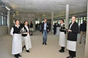 Nachdem bereits 2018 bei der Klausurtagung des Vorstands der Kreishandwerkerschaft beschlossen wurde, einen Neubau zu verwirklichen, haben einige Hürden wie das Warten auf die Baugenehmigung, die Corona-Pandemie oder die Preissteigerungen dazu geführt, dass sich der Start des Baus bis März 2022 verzögert hat. Doch man sei im Zeitplan und gehe davon aus, dass Ende 2024 alles bezugsfertig sei, so Reitz und Otto zum Abschluss ihrer Begrüßung, bevor Marcus Otto die „magischen Worte“ sprach: „Das Buffett ist eröffnet! Lassen Sie uns zusammen feiern.“