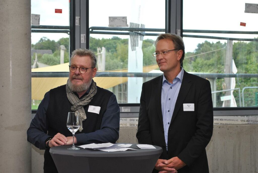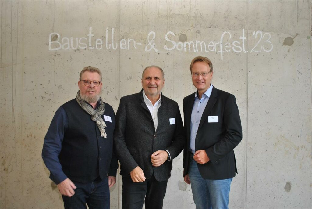 Das war ein Fest! Die Kreishandwerkerschaft Bergisches Land hat Anfang August zum Baustellen- und Sommerfest 2023 geladen im Rohbau des neuen Gebäudes. Rund 100 Gäste begrüßte Willi Reitz, Kreishandwerksmeister, zusammen mit Marcus Otto, Hauptgeschäftsführer der Kreishandwerkerschaft Bergisches Land. An festlich gedeckten Tischen zwischen den Betonsäulen nahmen Platz der Präsident der Handwerkskammer zu Köln, Hans-Peter Wollseifer, die Geschäftsführer der Kreishandwerkerschaften Köln, Bonn/Rhein-Sieg und Rhein-Erft sowie deren Kreishandwerksmeister.