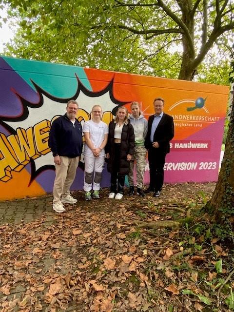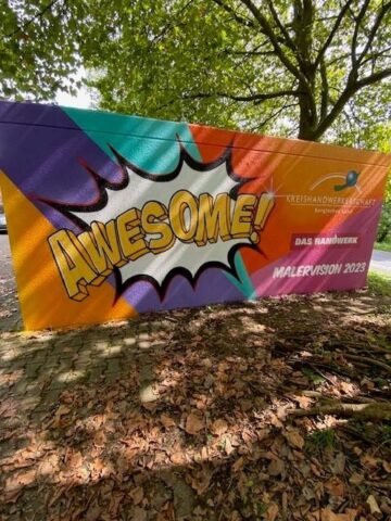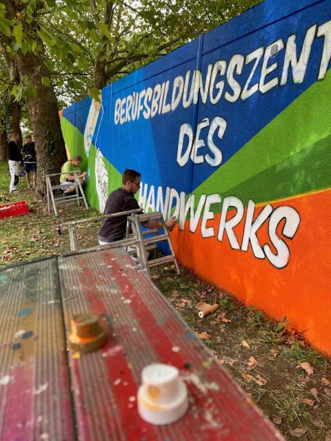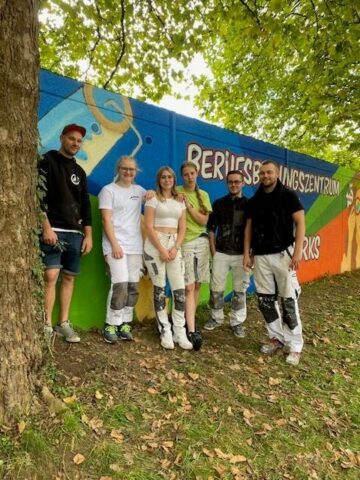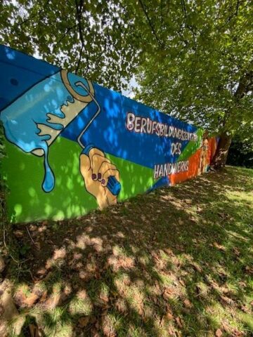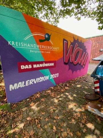 Der Graffiti-Workshop im Rahmen der jährlich stattfindenden Malervision ist quasi schon eine Legende. Zusammen mit MR Graffiti, Mark Roberz aus Duisburg, dürfen jedes Jahr fünf Auszubildene im Maler- und Lackiererhandwerk im zweiten Lehrjahr ganz legal eine Wand mit Spraydosen bearbeiten. Heraus kommen dabei immer wahre Kunstwerke, die für Aufsehen sorgen.