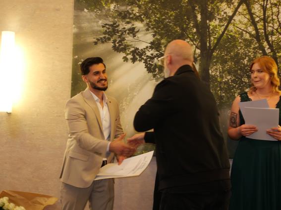 Obermeister Stroh überreichte im Anschluss die Gesellenbriefe zusammen mit den beiden stellvertretenden Obermeistern Runa Sabrina Korn und Dirk Kiel-Onneken, gratulierte ganz herzlich und wünschte den neuen Kolleginnen und Kollegen alles erdenklich Gute.