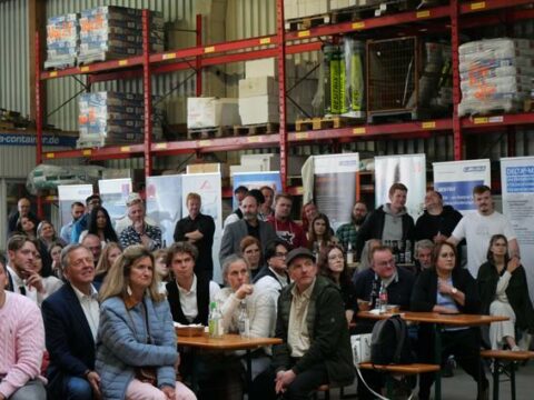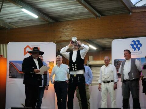 Was das Bauzentrum Blechmann in Wipperfürth als Gastgeber der Lossprechung da auf die Beine gestellt hatte, war schon etwas ganz Besonderes: Vor der offiziellen Lossprechung waren alle Gäste eingeladen, das Viertelfinale auf einer großen Leinwand mitzuverfolgen – Public Viewing mit anschließender offizieller Lossprechung. Mit großer Freude und Stolz wurden zwei Dachdeckergesellinnen und 99 männliche Gesellen des Bau- und Dachdeckerhandwerks aus Leverkusen, Rhein-Berg und Oberberg offiziell in die aufregende Welt des Handwerks entlassen.