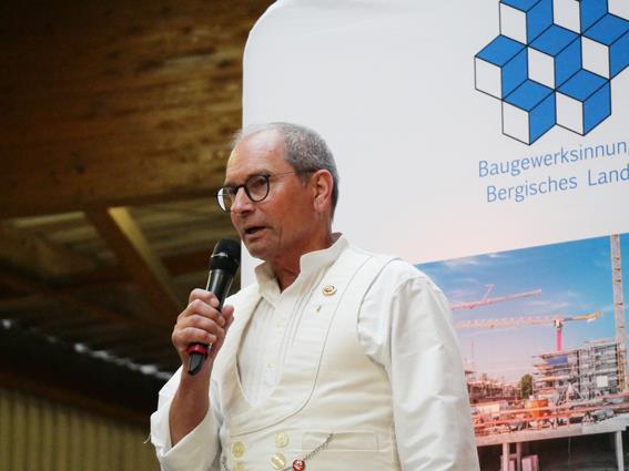 „Alles was Spaß macht ist Beruf. Alles, was keinen Spaß macht ist Arbeit“, zitierte der Kreishandwerksmeister Willi Reitz den Modedesigner Karl Lagerfeld. „In diesem Sinne müsst ihr in eurem Leben hoffentlich nie arbeiten, könnt dabei aber immer euren Beruf ausüben“, wünschte er den jungen Leuten. Harald Laudenberg, Obermeister der Dachdeckerinnung, zog nochmal eine Parallele zur deutschen Fußballnationalmannschaft: „Wir haben gerade ein Spiel gesehen, in dem die deutsche Mannschaft gekämpft hat und für das brennt, was sie tun. Macht es in eurem Beruf genauso: Ihr müsst brennen, für das was ihr tut!“ Der Obermeister der Baugewerksinnung Bergisches Land, Gerd Krämer, gratulierte den Loszusprechenden ganz herzlich: „Sie haben eine fundierte Ausbildung abgeschlossen und halten bereits mit Ihrem Gesellenbrief etwas Solides in Händen.“