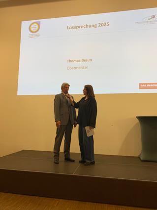 Freitagabend (14.03.2025) bei :metabolon in Lindlar:Er unterstrich außerdem, wie wichtig das Ehrenamt im Handwerk ist und warb gleichzeitig bei den jungen Leuten, sich dort zu engagieren: „Ohne Ehrenamt im Handwerk geht nichts. Der Prüfungsausschuss setzt sich aus ehrenamtlich Tätigen zusammen. Ohne diesen Ausschuss gibt es irgendwann keine Prüfungen mehr, damit nicht mehr genügend Handwerker. Dann kann es sein, dass man auf einen Handwerker zum Teil so lange warten muss, wie auf einen Termin bei z.B. einem Augenarzt.“ Thomas Braun sei sich sicher, dass die Junggesellen jetzt gut gewappnet ins Berufsleben starten. Er ermutigte sie, ihr Potenzial weiter auszuschöpfen: „Sie haben alle Möglichkeiten. Jetzt gilt es, etwas draus zu machen.“