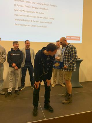 Platz 3: Sebastian Paladino aus Leverkusen; gelernt bei Fester Heizung- & Sanitär GmbH, Leverkusen