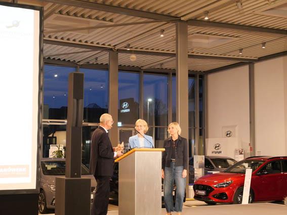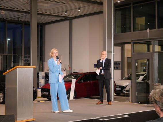 Reiner Irlenbusch, Obermeister der Kraftfahrzeuginnung Bergisches Land, führte moderativ durch den Abend, Monika Gieraths-Heller, stellvertretende Obermeisterin und Gastgeberin begrüßte alle Gäste ganz herzlich. Anschließend tauschten sie sich kurz über den Stand der Dinge in der Branche aus und ließen die Zuhörerinnen und Zuhörer teilhaben am Stand der Dinge und der Transformation im Kfz-Bereich. Gieraths-Heller warb bei den Junggesellinnen und Junggesellen darum, sich an diesem Thema zu beteiligen, weiterzubilden und die Herausforderungen anzunehmen.