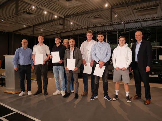 Sie haben es geschafft: Insgesamt 117 junge Menschen, darunter zwei Frauen, aus Rhein-Berg, Oberberg und Leverkusen haben die dreieinhalbjährige Ausbildung zum Kraftfahrzeugmechatroniker erfolgreich abgeschlossen. Am Freitagabend (28. März 2025) wurden sie vor rund 250 Gästen im feierlichen Ambiente im Autohaus Gieraths GmbH in Bergisch Gladbach Bensberg von ihrer Ausbildung losgesprochen und in den Gesellenstand erhoben.