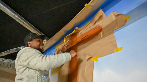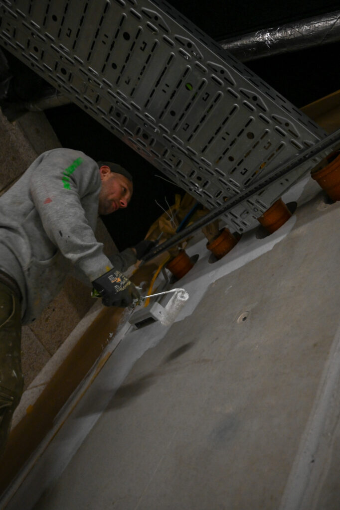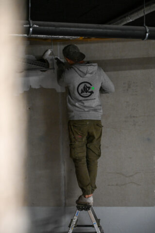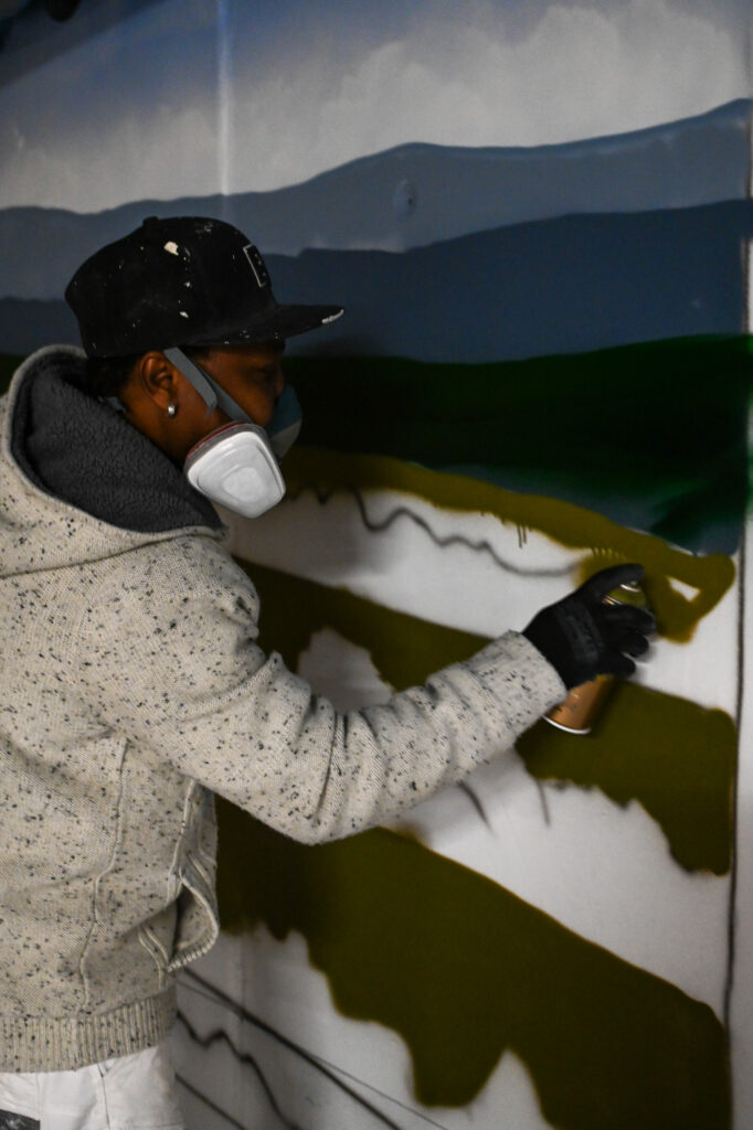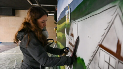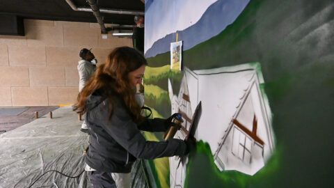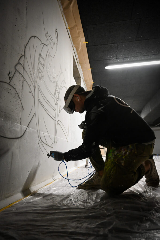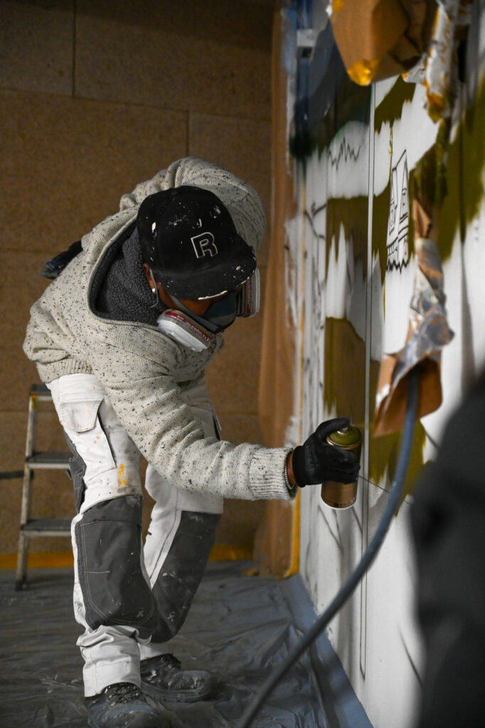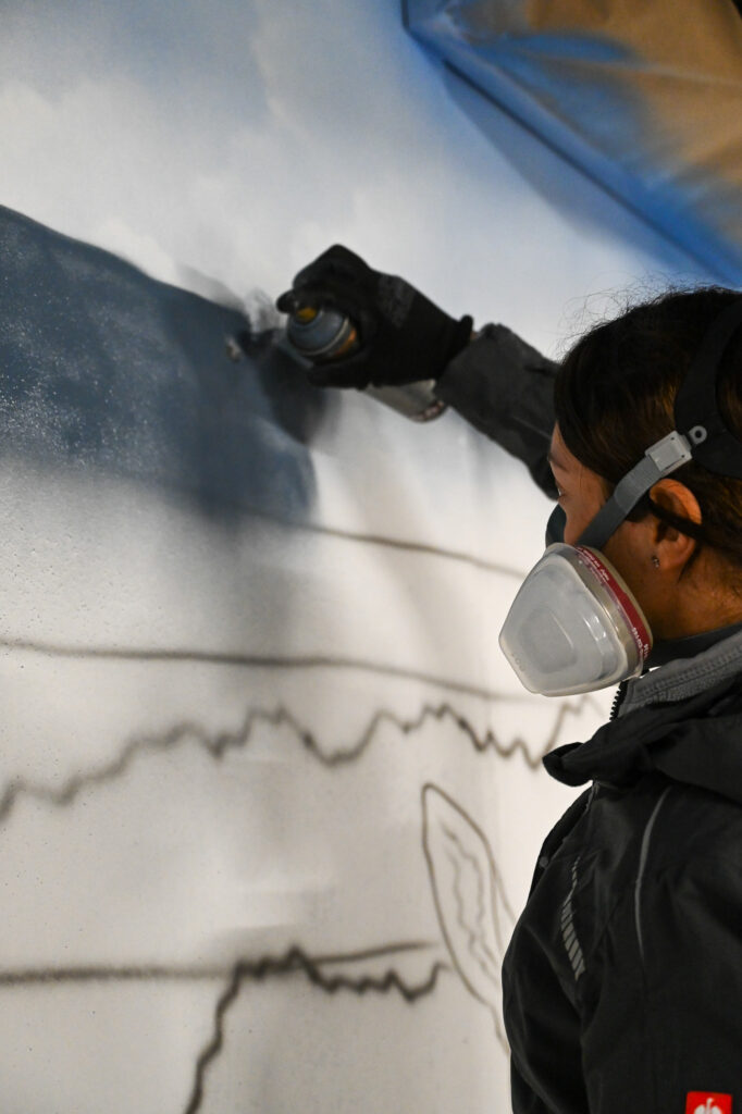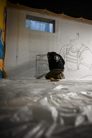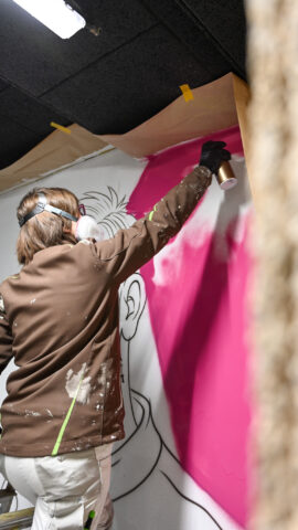 An einem Samstag Anfang Februar griffen fünf junge Menschen zu Spraydosen und zauberten zum zweiten Mal in Folge auf einige Wände in der Tiefgarage unter dem Neubau der Kreishandwerkerschaft Bergisches Land Handwerksberufe wie Bäcker, Tischler und Anlagenmechaniker für Sanitär-, Heizungs- und Klimatechnik. An einer weiteren Wand ist eine Bergische Landschaft mit u.a. einem Reh und einem Fuchs – beide täuschend echt – entstanden.