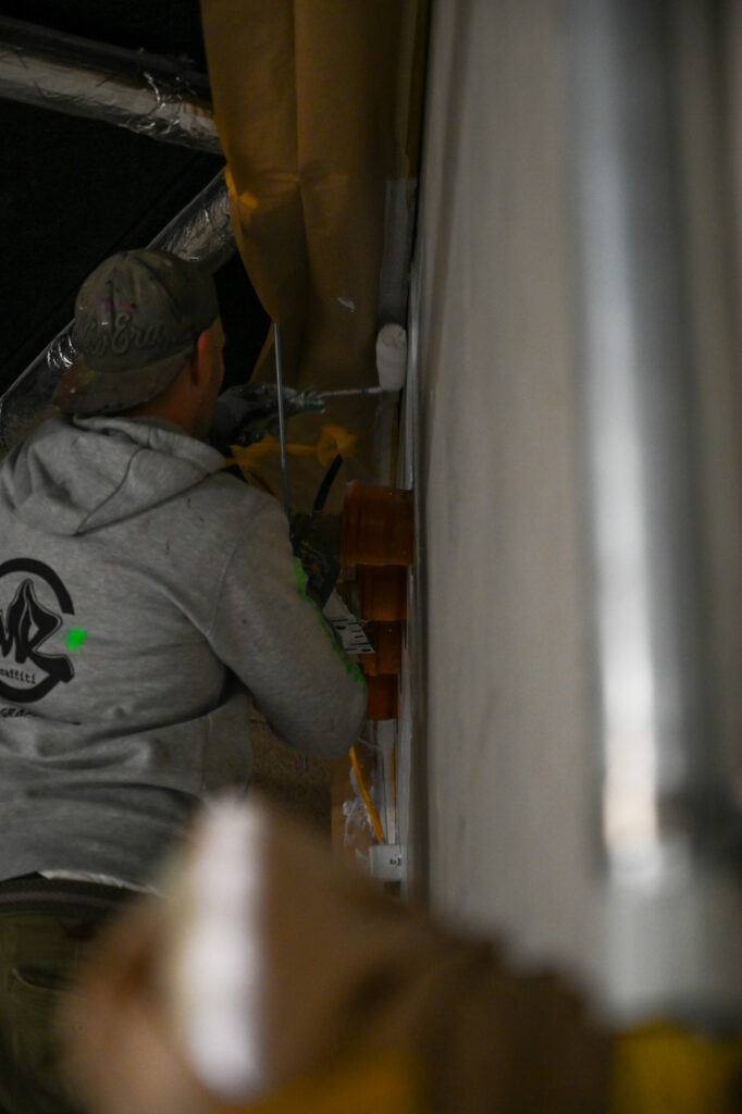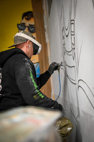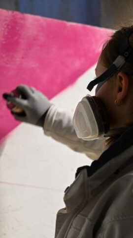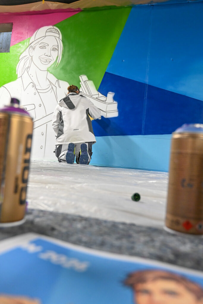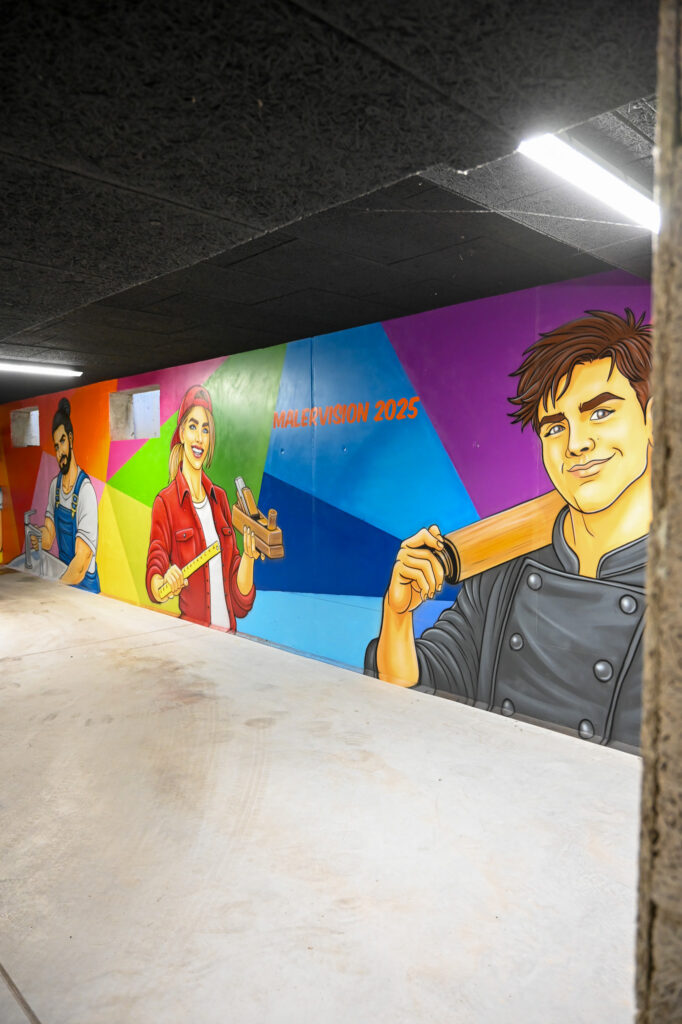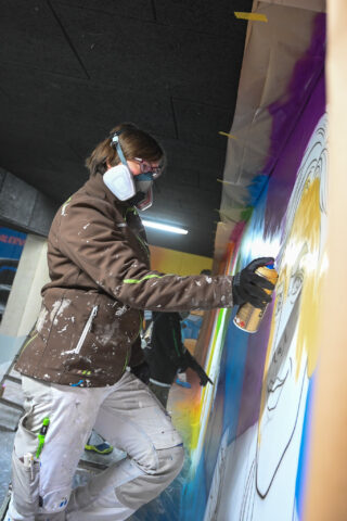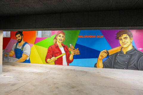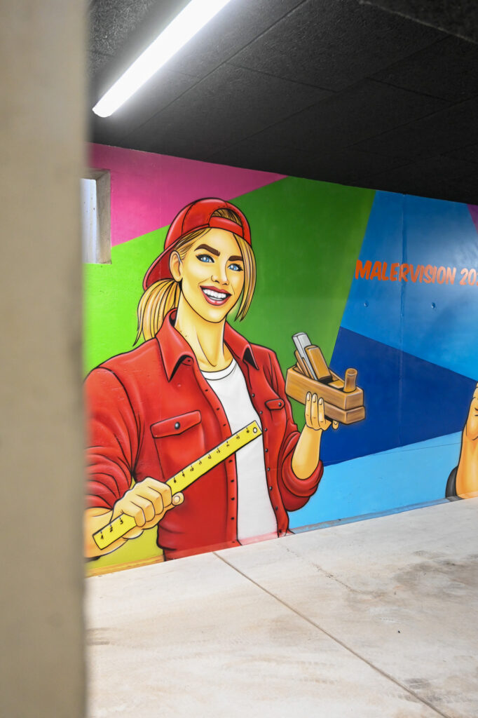 Der Graffiti-Workshop im Rahmen der jährlich stattfindenden Malervision ist quasi schon eine Legende. Zusammen mit dem Graffiti-Künstler MRGraffiti, Mark Roberz aus Duisburg, dürfen jedes Jahr fünf Auszubildene im Maler- und Lackiererhandwerk im zweiten Lehrjahr ganz legal eine Wand mit Spraydosen bearbeiten. Heraus kommen dabei immer wahre Kunstwerke, die für Aufsehen sorgen.