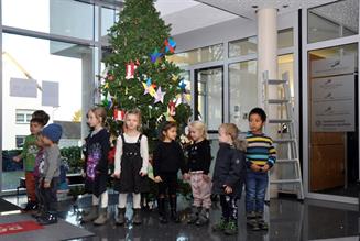 Schöne Tradition: Kindergartenkinder schmücken den Weihnachtsbaum der Kreishandwerkerschaft