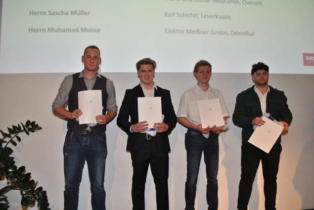 Die drei Prüfungsbesten (v.l.n.r.): Jan Hüpper aus Overath, Tim Hellmuth aus Bergisch Gladbach, Patrick Hannes aus Reichshof