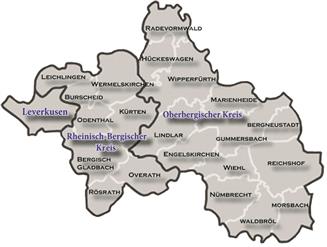 Zu unserem Zuständigkeitsbereich gehört die Stadt Leverkusen, der Rheinisch-Bergische Kreis sowie der Oberbergische Kreis.
