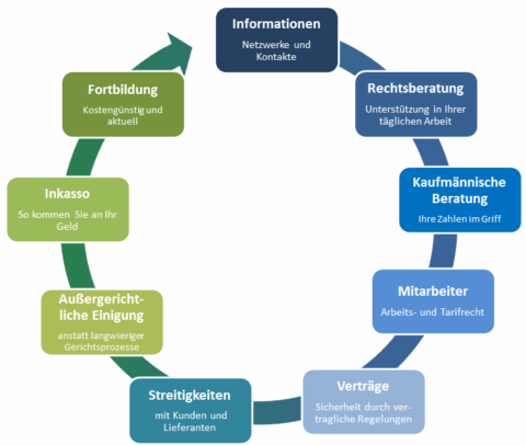 Die Kreishandwerkerschaft Bergisches Land bietet ihren Mitgliedern eine sehr umfangreiche juristische Beratung, Betreuung und Begleitung. Darüber hinaus erhalten Sie Zugriff auf eine Vielzahl von Verträgen, Tarifinformationen und beispielsweise Vergütungsübersichten.