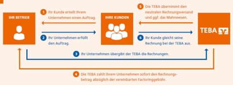 Mit unserem Partner der KHBL Service- und Wirtschaftsgesellschaft mbH existiert eine Kooperation mit der TEBA Kreditbank. Dieser Finanzpartner möchte Unternehmern den Rücken freihalten. Als Betrieb kümmern Sie sich ums Geschäft und die TEBA kümmert sich um Ihre Rechnungen, Forderungen und ggfs. das Mahnwesen.